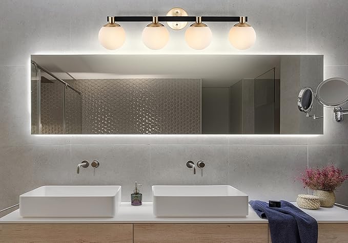 JONATHAN Y 5.75" Brass Gold/Black Modern Globe LED Vanity Wall Sconce Light, White Frosted Glass Shade, Mid-Century Art Deco Wall Lamp for Bathroom, Kitchen, Hallway (JYL3543A)