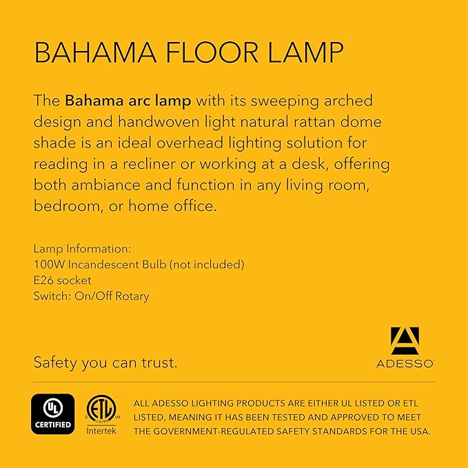 - Modern‑Coastal Design - The Bahama Arc Lamp blends sleek modern lines with relaxed coastal charm. Featuring a dark bronze frame and a light natural rattan shade that diffuses a warm, balanced glow to elevate any bedroom, living room, or home office.