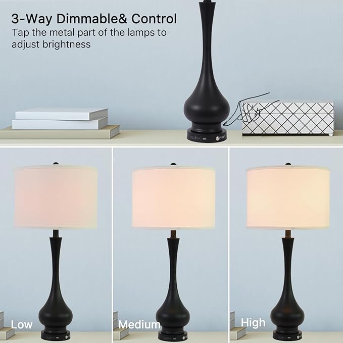 - 3-Way Dimmable Lamps: These touch lamps offer 3 levels of brightness (Low, Medium, High) to meet your specific demands for different occasions. The high light is perfect for working or studying, the medium suitable for daily use, low light could help you to fall asleep easily. Great as a living room lamp, bedroom lamp, bedside table lamps, nightstand lamps.