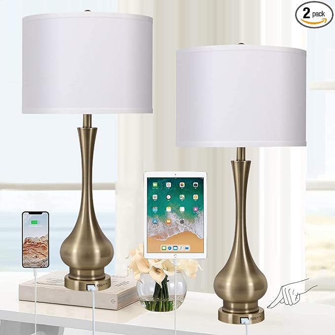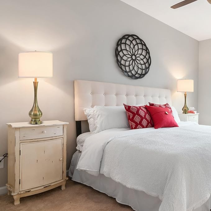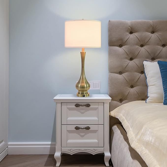 - Practical USB Charging Port: These bedroom lamps come with USB charging port, being convenient to satisfy your charging demands. In addition, various electronic devices, such as smart phone, iPad, earphone, laptop, e-book or humidifier, can be charged even when these bedside lamps are off. With an E26 socket(Min 60W, Max 100W, COMPATIBLE 120V, BULBS NOT INCLUDED).