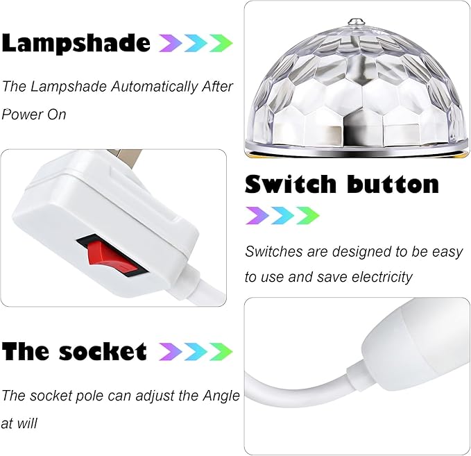 - 【Disco Strobe Lights】:These DJ Crystal Full Color LED Rotating Bulbs provide RGB colorful lighting effects, they will automatically change and rotate to create all kinds of cool light displays. Perfect for disco, ballroom, club, bar, Christmas.