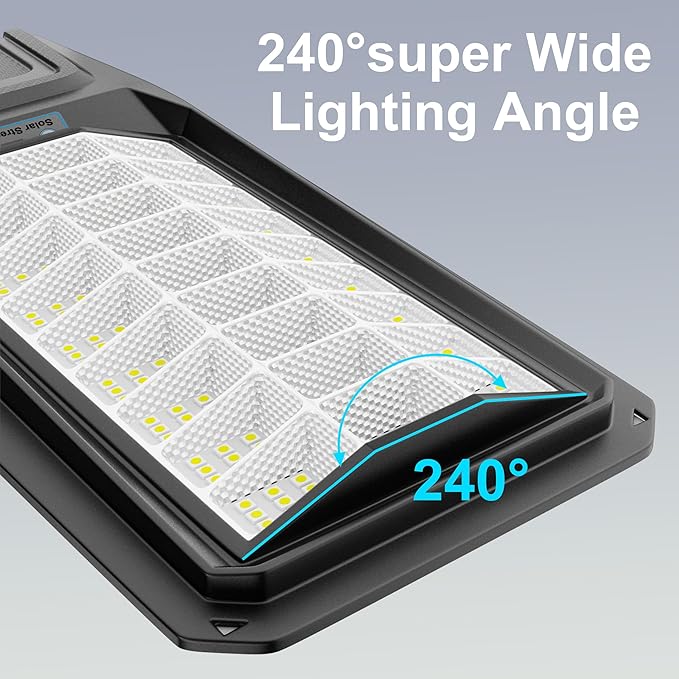 - Wide Angle Lighting & 0 Electricity Bill: Our this upgraded whaterproof solar lights outdoor will automatically light up at night, turn off and charge during the day. Highly-efficient solar panels has no electricity bills. Newly upgraded solar street lights outdoor dusk to dawn adopts 320 degree wide angle lighting design, enjoying a wider range of illumination.