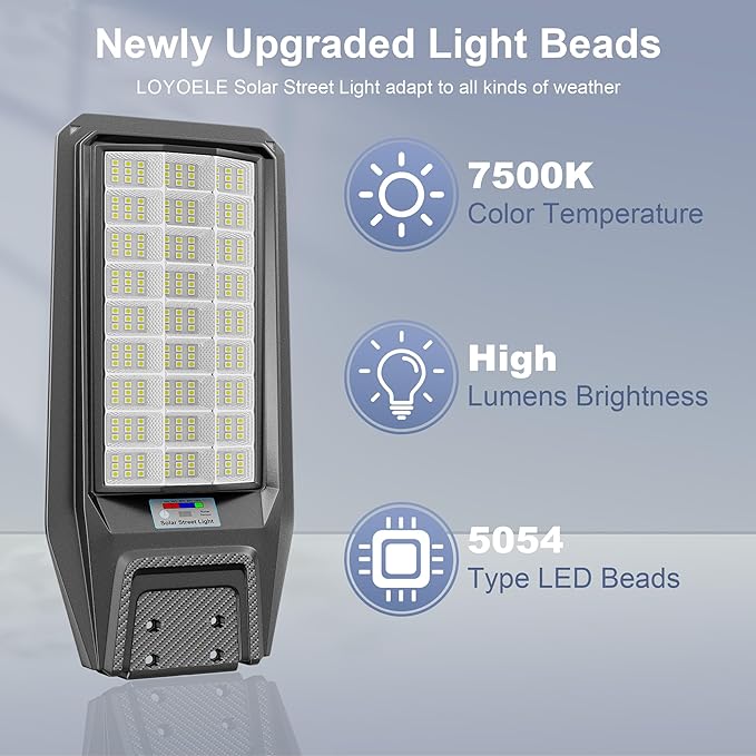 loyoele Solar Street Light Outdoor Waterproof Dusk to Dawn, 9800W Solar Parking Lot Lights Commercial Large Outdoor Flood Light Heavy Duty Solar Power with Motion Sensor for Yard Garden