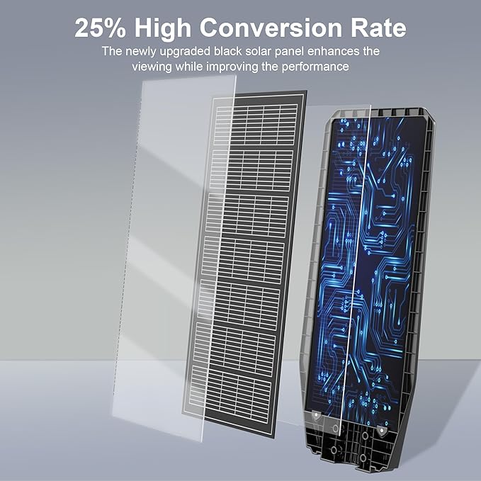 - Long-lasting Battery Life:With a 25% higher photovoltaic conversion rate, this solar street light charges fully in just 5-6 hours and can work for 22-26 hours on a full charge.