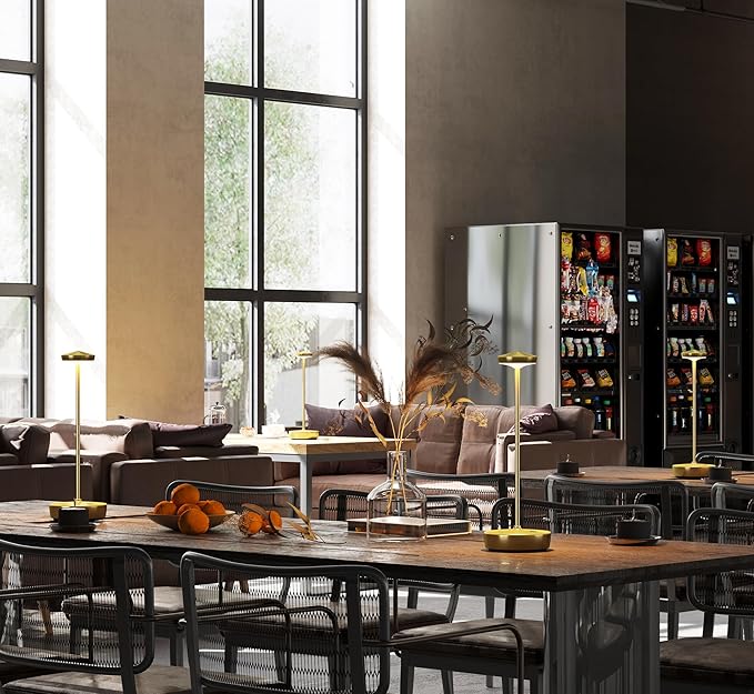 - Stylish & Versatile Design: Sleek modern design enhances any space; durable aluminum alloy body; weighted base with non-slip pads for stability; rechargeable cordless operation for indoor/outdoor flexibility; suits restaurants, cafes, patios, and home decor