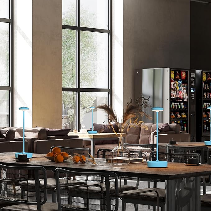 - Stylish & Versatile Design: Sleek modern design enhances any space; durable aluminum alloy body; weighted base with non-slip pads for stability; rechargeable cordless operation for indoor/outdoor flexibility; suits restaurants, cafes, patios, and home decor