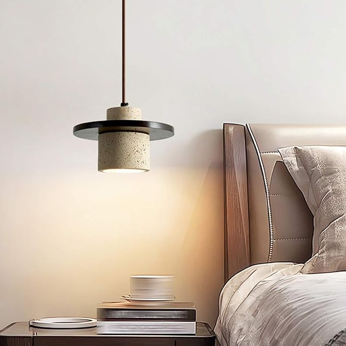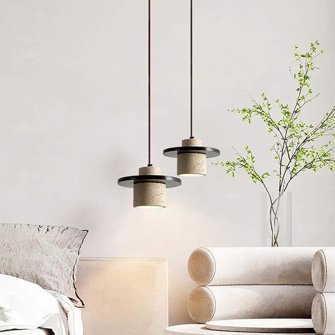 Wabi Sabi Pendant Light Natural Stone Retro Japanese Style Yellow Travertine Pendant Lighting Vintage Mini Wood Nordic Hanging Light Adjustable For Kitchen Island & Dining Room